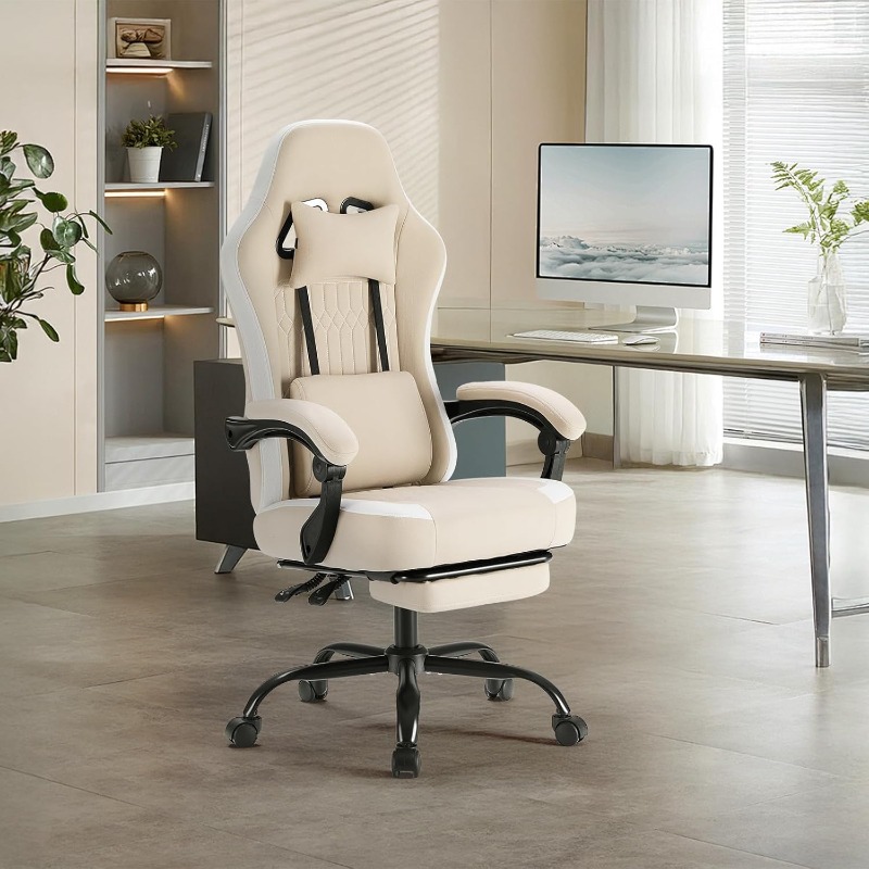 Computer Game Chair - Ergonomic Office Chair with Foot and Lumbar Support, Height Adjustable Work Chair, Headrests, Armrests, and Rollers