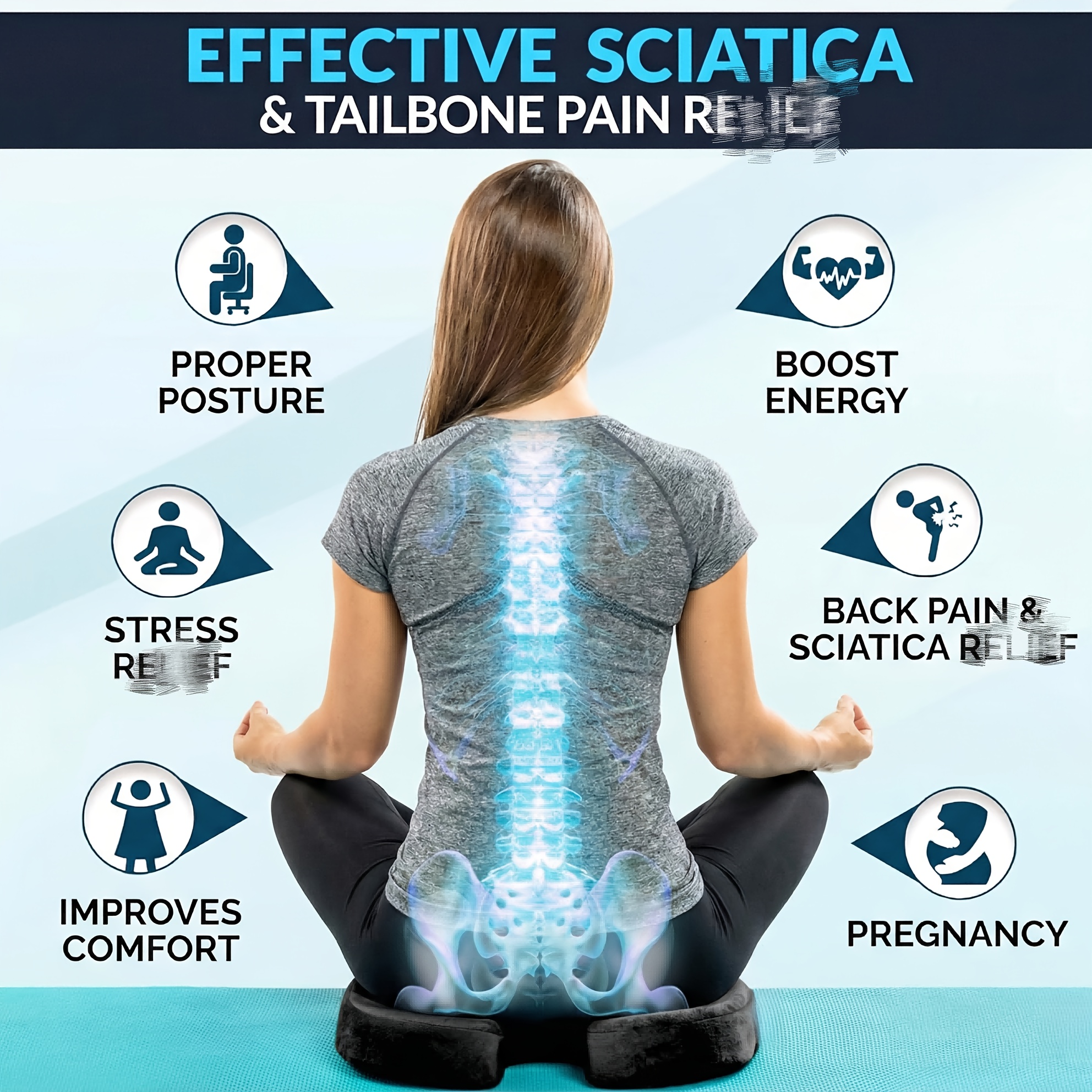 ELHIVE Memory Foam Cushion Suitable for Long Sitting Office Chair Car Cushion Medium Soft Pillow Machine Washable Compatible with Office Chair Truck Seat Lumbar Support Design
