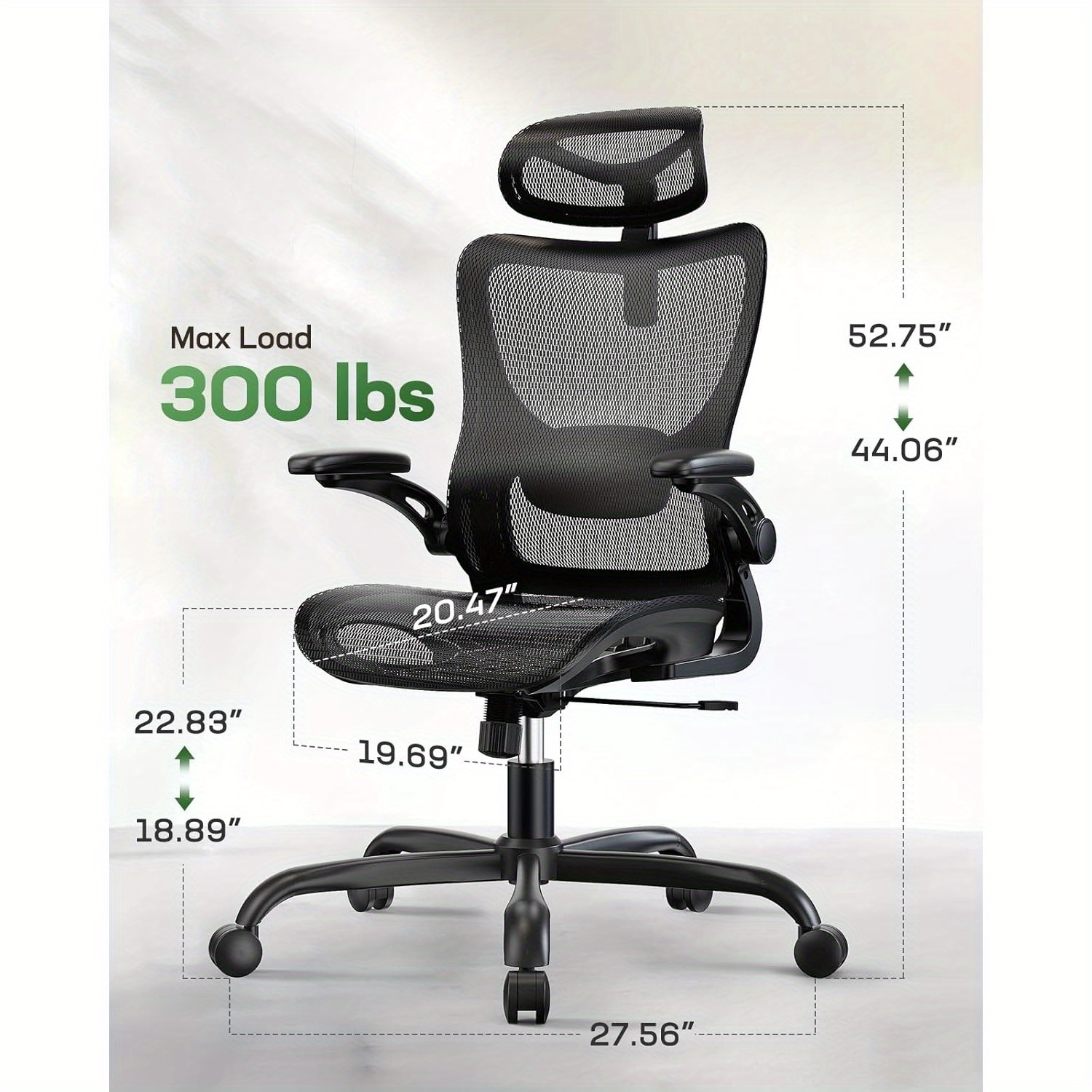 Ergonomic Mesh Office Chair High Back Home Office Desk Chair with Adaptive Lumbar Support, 2D Headrest, 3D Flip-Up Armrests, Height Adjustable and Rocking Tilt for Home Office and Gaming