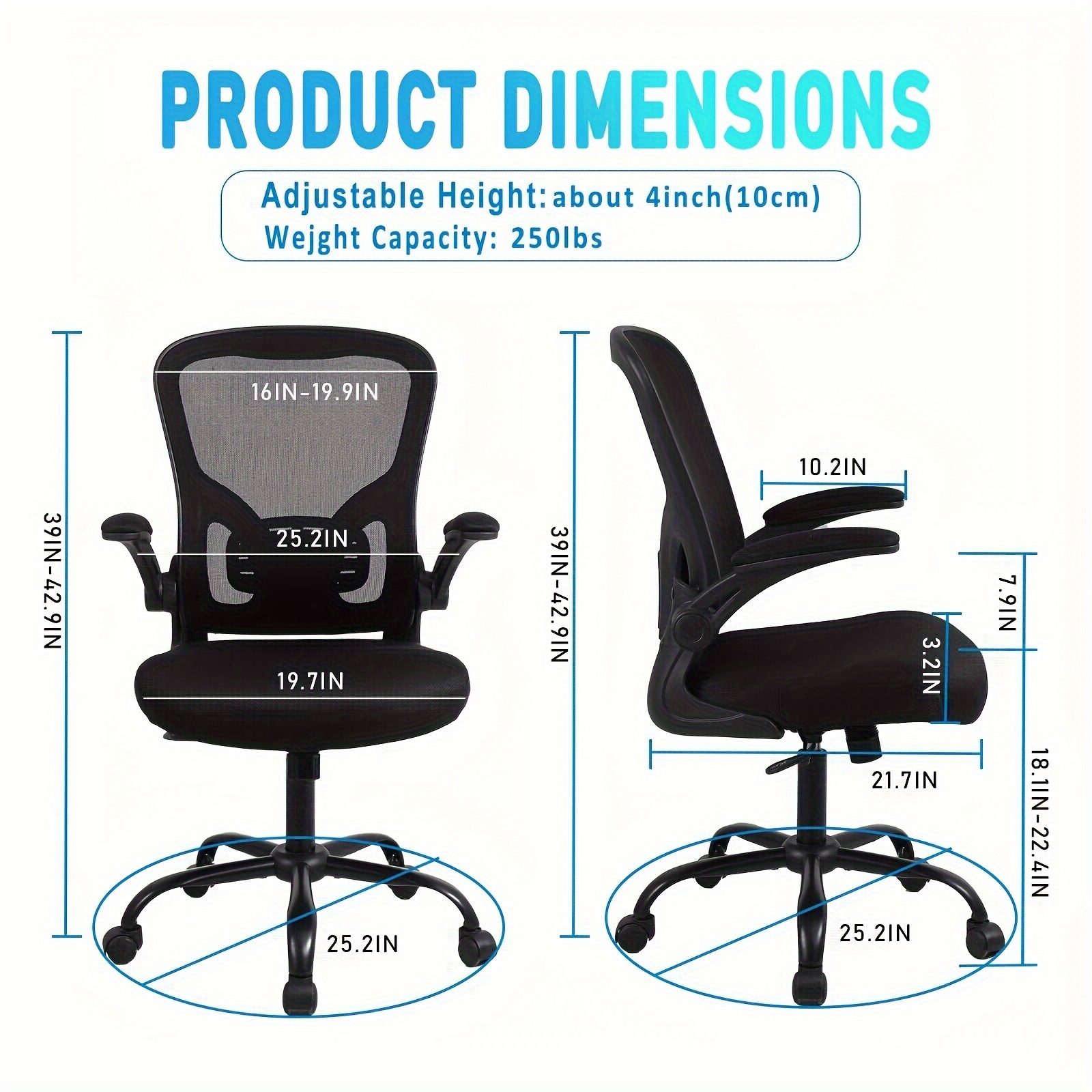 Home & Office Mesh Chair, Comfortable Breathable Adjustable Swivel Computer Chair, Ergonomic Design for Long Sitting,, Black One-piece